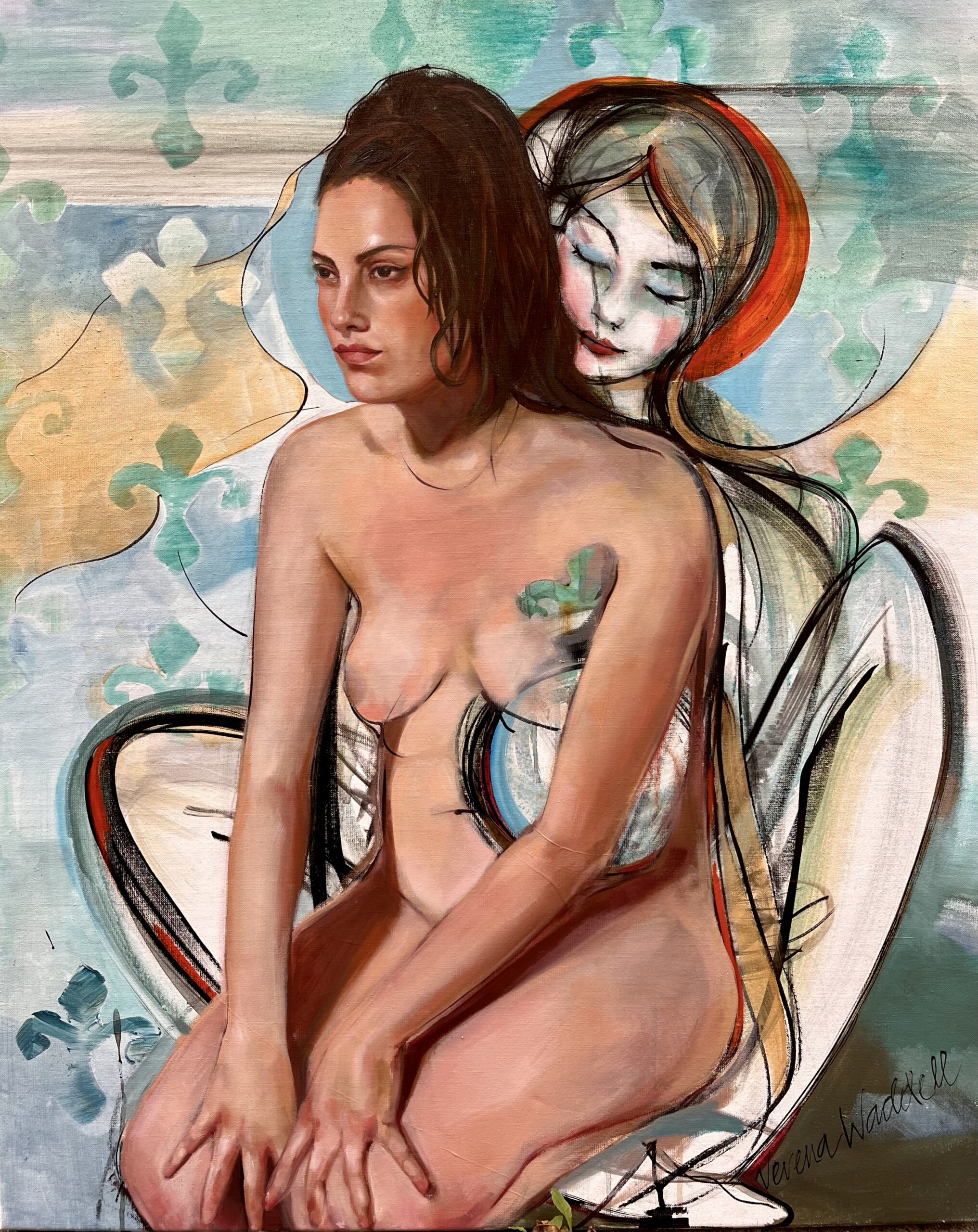 Care er endel av serien “Ta Plass”-originalen måler 80×100 cm og er en fusjon av energisk blekk, symbolikk og figurativ utfoldelse