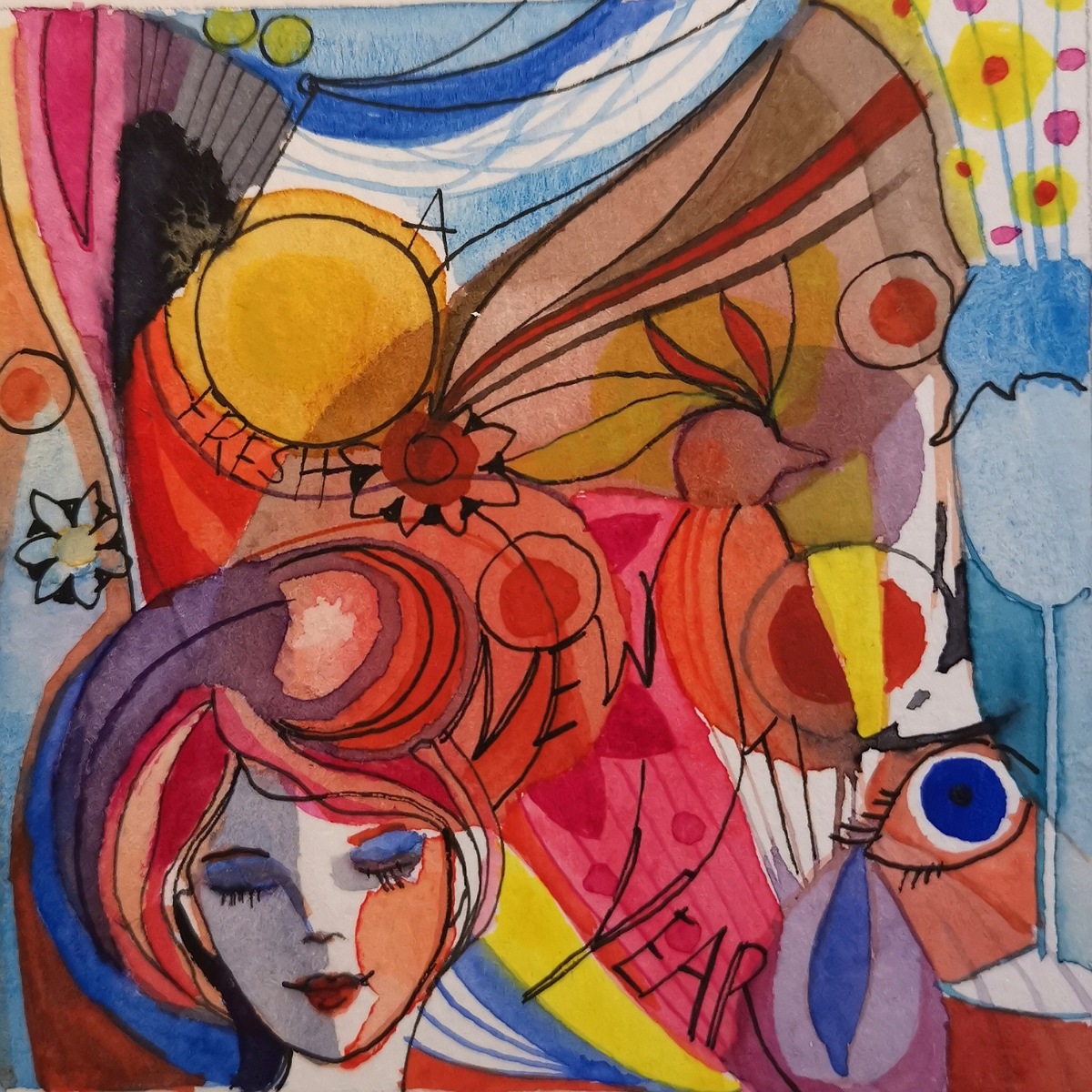Colourstories 2021: Original akvarell på 300 gms akvarell papir- innrammet, måler 15x15cm Colourstories 2021: Original watercolour on 300 gms watercolour paper. Measures 15×15 cm, framed