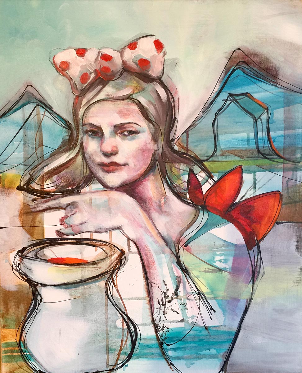 Blekk og akryl på linlerret, 46x58cm Ink and acrylic on linen, 46x58cm